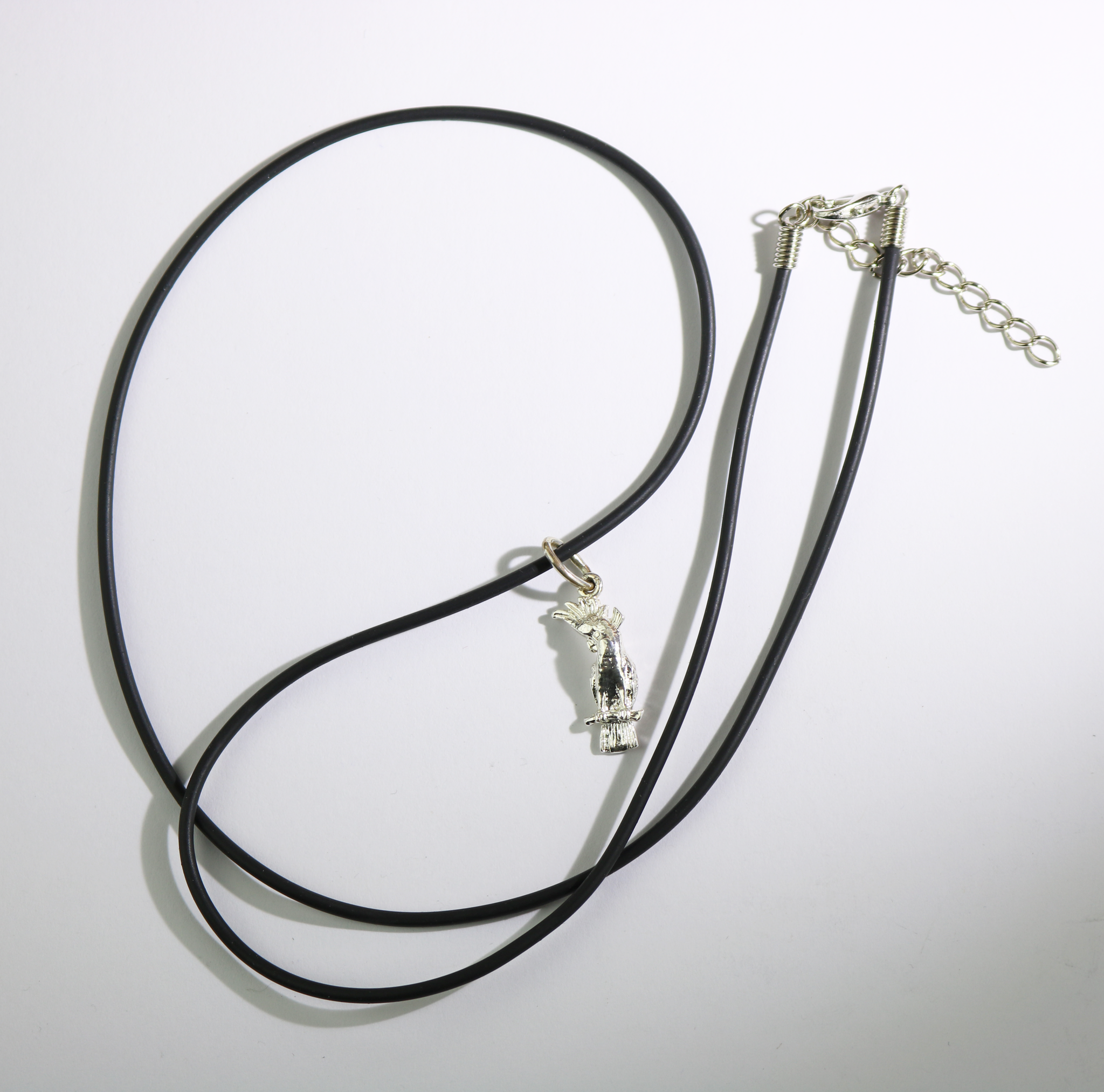 This delightful Cockatoo sterling silver necklace is a detailed cast of this unique Australian bird.